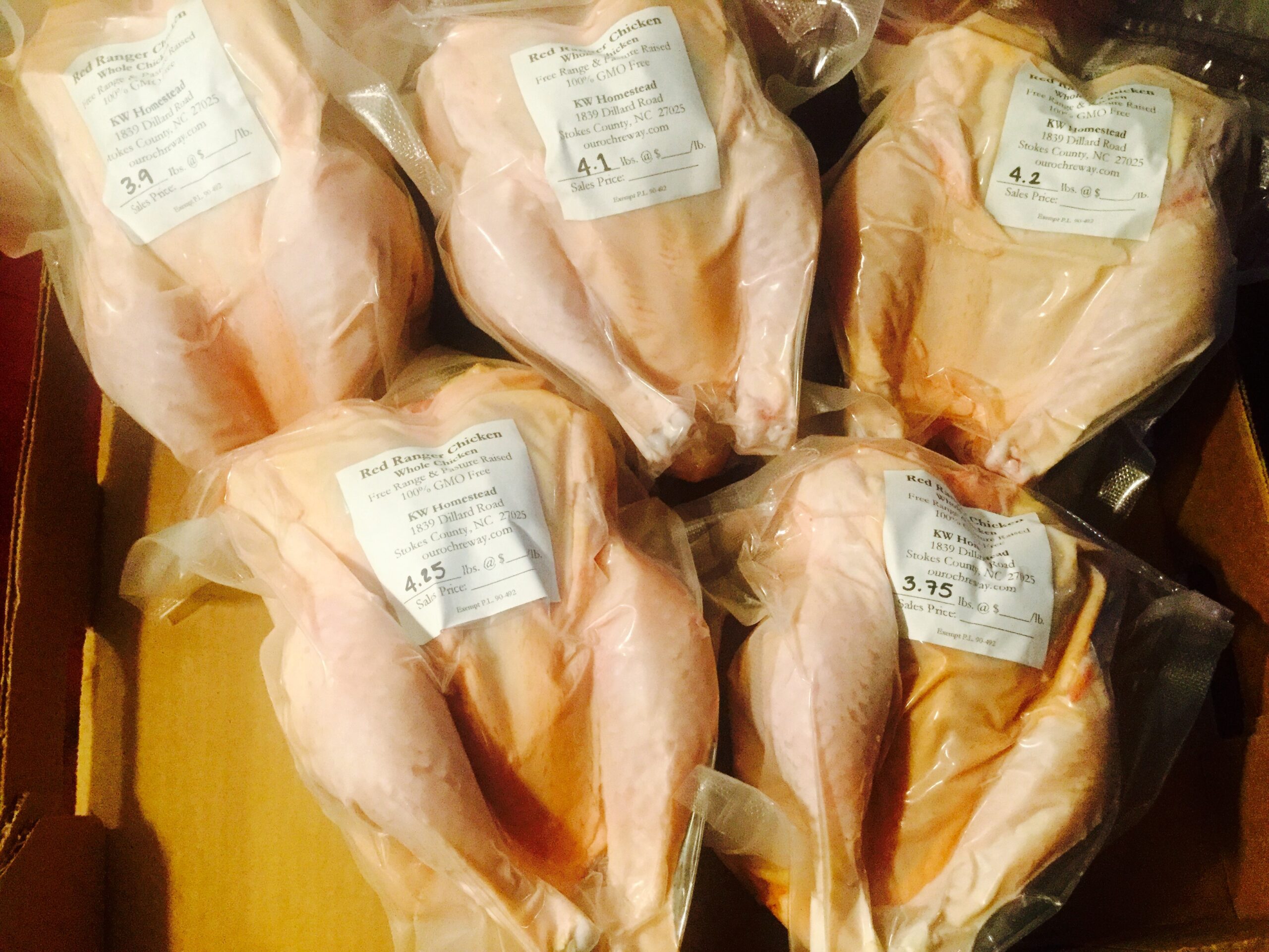 Please make a note in your order of which bird size you would like, among the 4-6 lb. range. Pickup will be Saturday, November 18 at the Corner Farmers Market (2105 W. Market Street, Greensboro, NC 27403) from 8am-12pm.